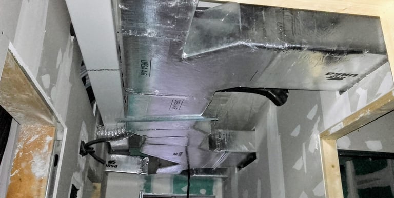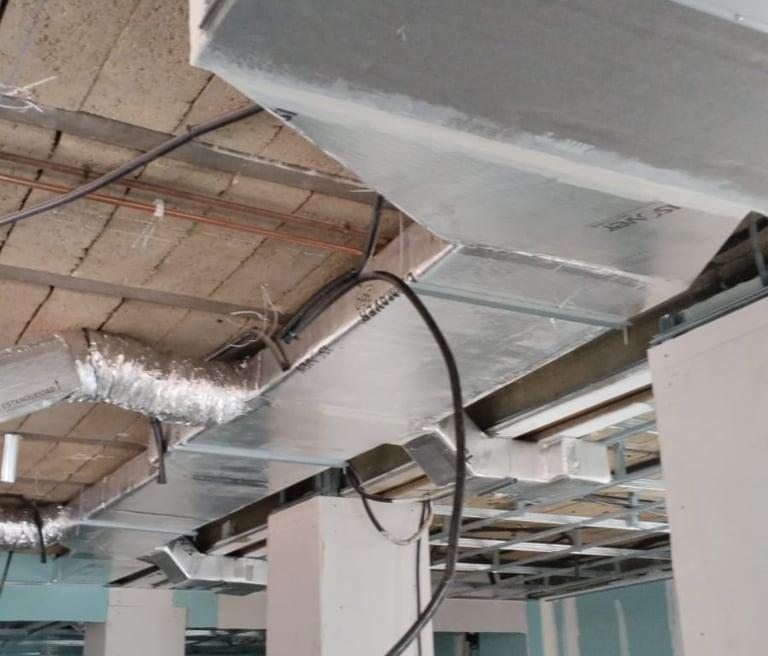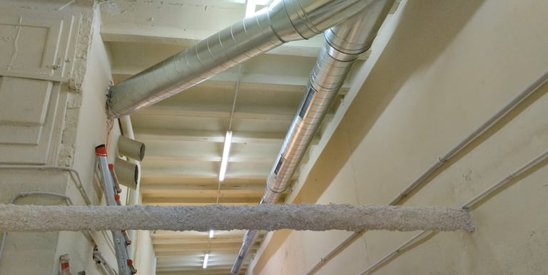 Instalación rápida y precisa de conductos de aire en fibra y chapa para profesionales.
