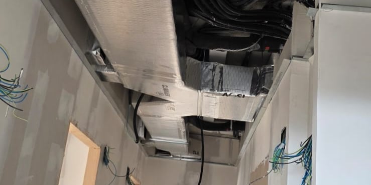 Instalación rápida y precisa de conductos de aire en fibra y chapa para profesionales.