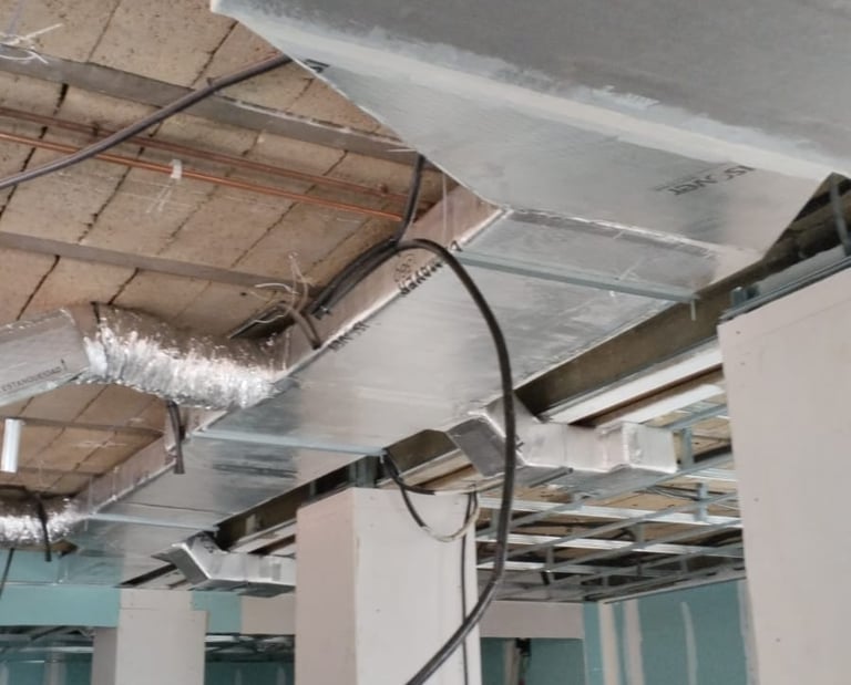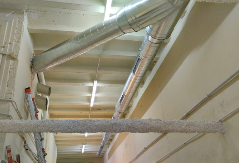 Instalación rápida y precisa de conductos de aire en fibra y chapa para profesionales.